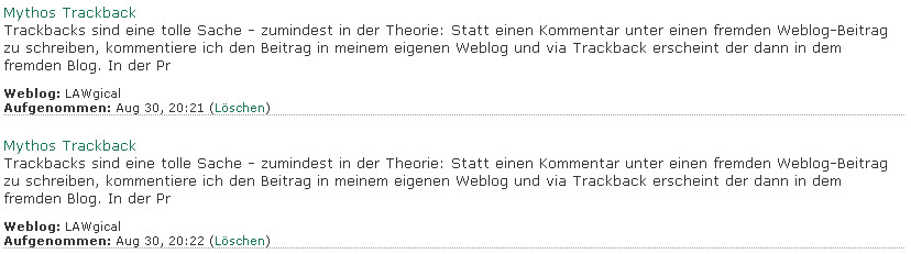 • [laden | anzeigen] (2006-08-30 18:52:21, 49.3 KB) [[attachment:TrackbackLawgical.jpg]]